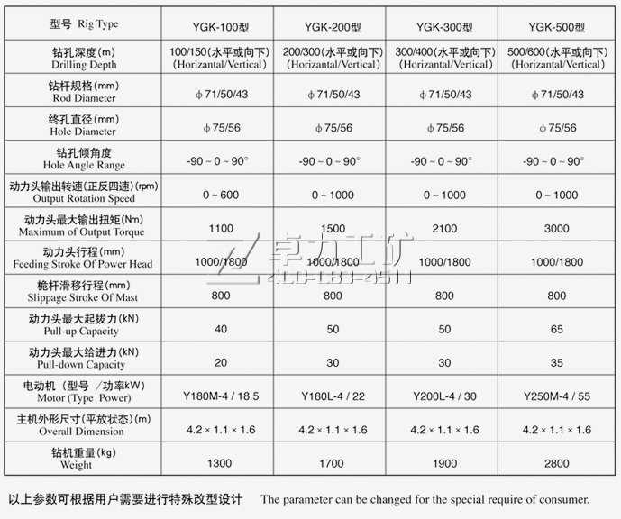 四、YGK全液壓坑道鉆機(jī)主要技術(shù)參數(shù)