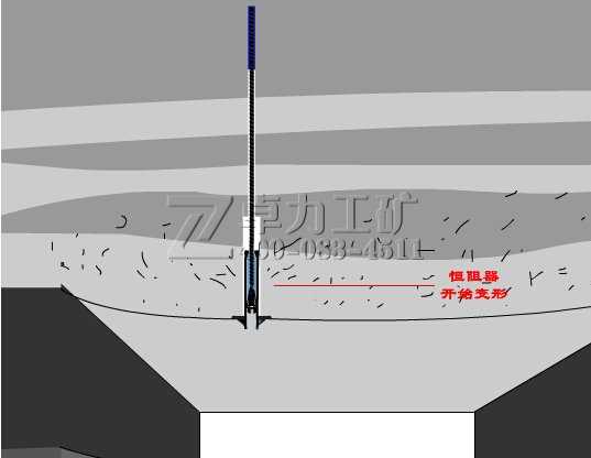 恒阻器和錨桿(索)配套用于巷道支護(hù),恒阻器與和錨桿(索)共同組成完整的支護(hù)體,支護(hù)體能夠在恒阻的情況下發(fā)生拉伸變形,可以充分適應(yīng)圍巖大變形對(duì)支護(hù)桿體延伸量的要求,解決了傳統(tǒng)錨桿(索)支護(hù)技術(shù)不能適應(yīng)圍巖非線性大變形破壞特征而造成的支護(hù)失效問(wèn)題。
