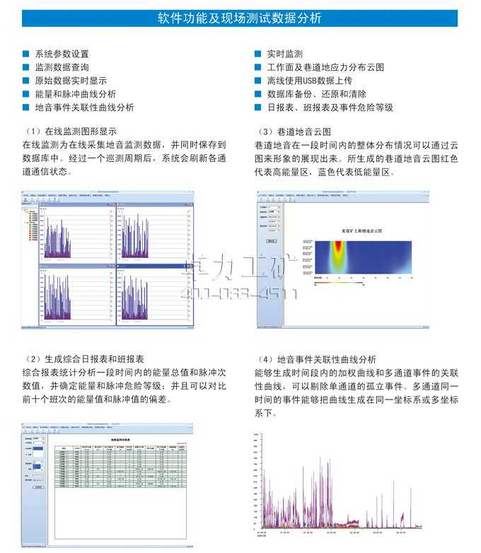 基本功能:在煤礦開采中,煤巖體彈性變形能的瞬時(shí)釋放而產(chǎn)生突然劇烈破壞的動(dòng)力現(xiàn)象稱為“沖擊地壓”或“沖擊礦壓”。采場(chǎng)沖擊地壓已成為引發(fā)煤礦地質(zhì)災(zāi)害的重要因素之一。沖擊地壓發(fā)生是一個(gè)能量漸變到突變的過程,即煤巖體從微小破裂到破壞的過程,這個(gè)過程中伴隨著能量的釋放引起的彈性波向外傳播(即地音)的過程。本系統(tǒng)通過監(jiān)測(cè)地音事件參數(shù)指標(biāo)的變化,用以確定監(jiān)測(cè)范圍內(nèi)煤巖體的應(yīng)力狀態(tài)。監(jiān)測(cè)分析軟件(SCMPS)以圖表的形式顯示地音事件的能量、頻度,并做各種分析運(yùn)算工作,得出班累計(jì)地音事件數(shù)、班累計(jì)能量、平均能量、生成報(bào)表打印。通過對(duì)監(jiān)測(cè)數(shù)據(jù)的綜合分析,可以獲取采場(chǎng)動(dòng)力災(zāi)害的前兆信息,對(duì)采場(chǎng)動(dòng)力災(zāi)害進(jìn)行預(yù)測(cè)預(yù)報(bào)。目前國(guó)內(nèi)應(yīng)用的地音監(jiān)測(cè)系統(tǒng)大多數(shù)都是引進(jìn)國(guó)外的,如波蘭的SAK系統(tǒng)、ARES-5/E監(jiān)測(cè)系統(tǒng),由于成本、服務(wù)等因素影響在推廣方面受到了限制。該系統(tǒng)在借鑒國(guó)外技術(shù)的基礎(chǔ)上進(jìn)行了創(chuàng)新,其優(yōu)良的性價(jià)比和專業(yè)化的服務(wù)將帶給用戶滿意的應(yīng)用效果。