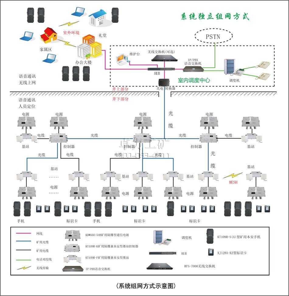 KT109R型礦用無線通信系統(tǒng)是卓力工礦與摩托羅拉公司合作開發(fā)的新一代礦用無線通信系統(tǒng)。該系統(tǒng)以光纖網(wǎng)絡(luò)為骨干(接入現(xiàn)有工業(yè)環(huán)網(wǎng)或獨立),以無線網(wǎng)絡(luò)為延伸,在煤礦井下設(shè)立若干基站,通過無線通信手段,為實現(xiàn)人員的語音通訊,人員監(jiān)測,數(shù)字化視頻監(jiān)控及環(huán)境監(jiān)測等提供了一個共用的平臺;也為實現(xiàn)生產(chǎn)調(diào)度,應(yīng)急救援與安全監(jiān)控提供良好的應(yīng)用基礎(chǔ)。