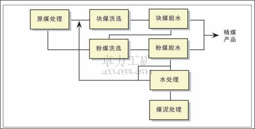 (1)原煤準(zhǔn)備:包括原煤的接受、儲存、破碎和篩分。