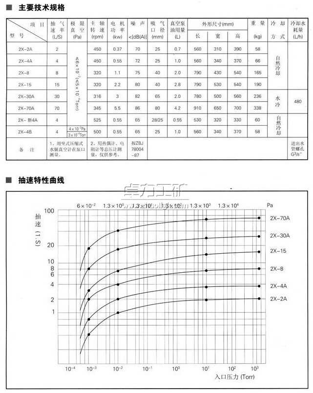 2.泵在環(huán)境溫度540范圍內,進氣口壓強小于1.3X103帕的條件下允許長期連續(xù)運轉,被抽氣體相對濕度大于90%時,應開氣鎮(zhèn)閥。