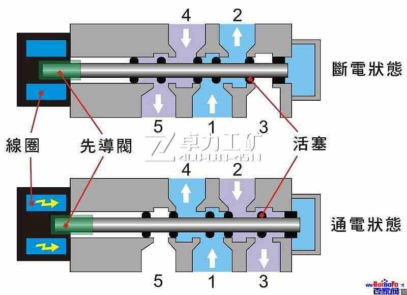 (2)電磁換向閥,電磁換向閥是利用電磁吸引力操縱閥芯換位的方向控制閥。弊用電磁鐵的通電呼分取斷電開(kāi)釋而間接推進(jìn)閥芯回節(jié)制液流方向。它非電氣解統(tǒng)和液壓系統(tǒng)之間的疑號(hào)轉(zhuǎn)換元件。