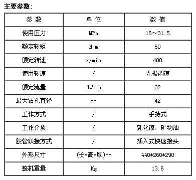 具有轉(zhuǎn)矩大、重量輕、鉆孔速度快、使用安全、操作方便等特點(diǎn)。